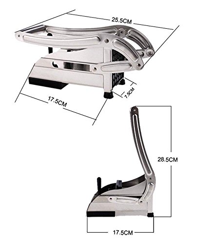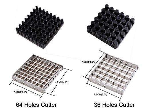 Size: L25.5 x W7.5 x H28.5cm Potato Fries Cutter: 36 Holes and 64 Holes 36 Holes Cutter: 7.5 x 7.5 cm (3.0\" x 3.0\") 64 Holes Cutter: 7.5 x 7.5 cm (3.0\" x 3.0\")