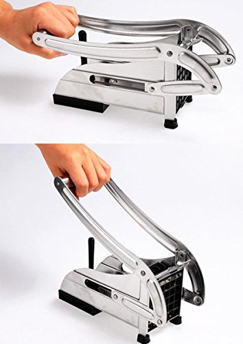 FEATURE: -Simple and easy cutting owing to the large base and long lever arm. -To change the blade, open the potato chipper fully, remove blade and fit new blade. Then withdraw ejector and insert new ejector to match color of blade. -When placed on end, it occupies little cupboard space. -The kitchen good helper. -Easy to clean, all parts removable and interchangeable.