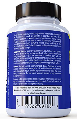 -. Feature : ✔ MADE WITH SCIENCE - This fast-acting brain booster formula is clinically formulated with the perfect blend of ingredients to increase your mental performance, promote a positive mood, increase natural energy and reduce stress & fatigue. / ✔ BOOST BRAIN POWER & COGNITIVE FUNCTION - NeoBrain brain pills support supplement increases mental health and acts as a memory booster to help you retain information and recall it with greater ease. Increase your alertness, clarity, and concentration so you can stay focused on the task at hand! / ✔ ENHANCED CONCENTRATION & REDUCED STRESS - With improved brain function and energy, you'll feel more confident in your ability to handle everyday situations and challenges with more ease, focus, and drive. / ✔ THE GOLD STANDARD SUPPLEMENT - Our extensive research has led us to this gold standard supplement that harnesses the all-natural benefits of Sunphenon® Green Tea Extract, Sensoril® Ashwagandha (Withania somnifera) herb, and naturally occurring caffeine; working together to provide a smooth jitter free boost of energy! / ✔ THE N.E.O.G.E.NICS PROMISE - With our 30-day no-questions-asked Money Back Guarantee, you have peace of mind! If you ever have a question or concern, message us and you'll get a response from the boss.