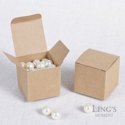 Ling's moment Kraft Gift Favor Boxes 2x2x2 Inch, Pack of 100, Brown Square Cardboard Jewelry Boxes for Wedding Party, Crafting, Cupcake Boxes