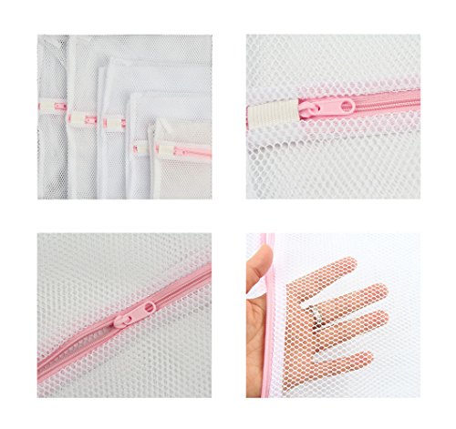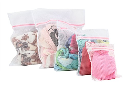 Net Mesh Laundry Washing Bags with Zipper Set of 5 - Perfect for Bra, Lingerie, Socks, Tights, Stockings, Baby Clothes