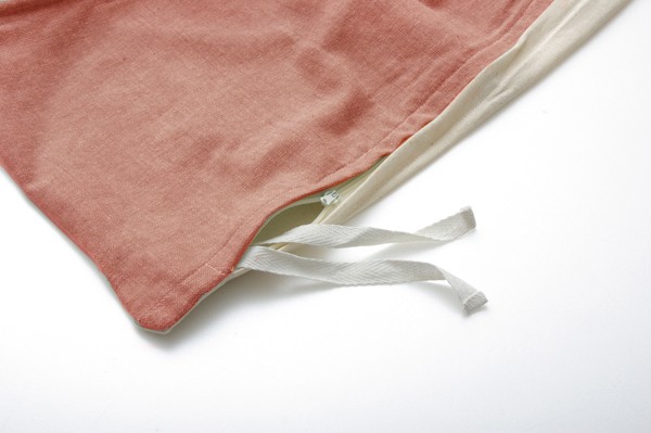 綿の産地、インドの綿を使用しています。太番手の糸を使い、ざっくりとした風合いです。綿はポリエステルに比べ静電気がおきにくく、繊維の中でも特に肌触りが良いのが特徴です。季節を選ばずオールシーズンご使用頂けます。ご家庭の洗濯機で洗える(ネット使用)ので、清潔にご使用頂けます。