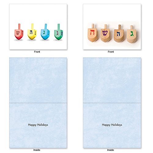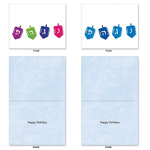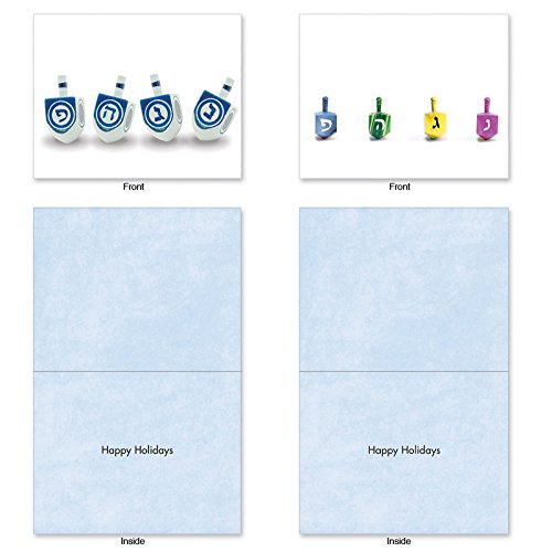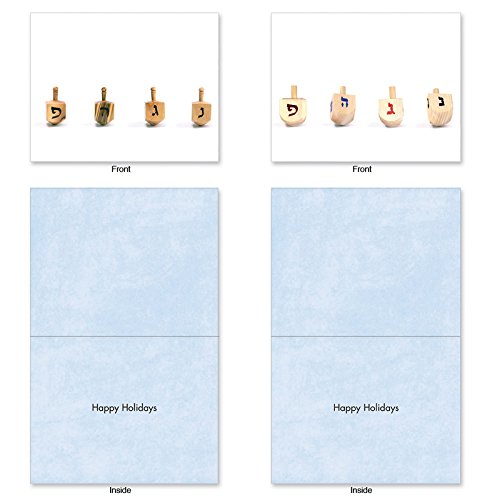 Put your happy Hanukkah wishes into play with these Happy Holidays greeted cards featuring Dreidels. These notecards look great framed, too! Try framing them individually, or grouping several in a collage frame, to create visually appealing wall decor.