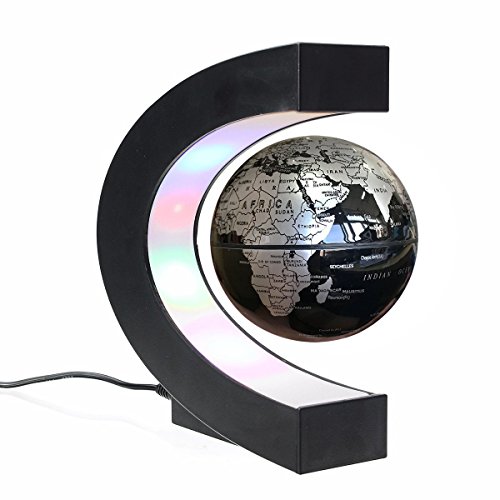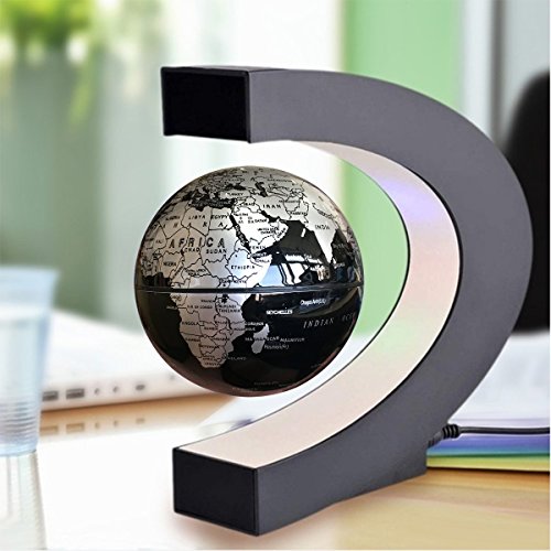 Studio : Woodlev Publisher : Woodlev Binding : Office Product Product Description Specification: Globe color: Silver/Black plastic globe Globe Diameter: 85mm C shape Base material: ABS, rubber oil coated C shape Base color: Matt black C shape base size: 18cm x 8.5cm x17cm Power Output 12V, 250mA Wall adapter 110V to 240V, included