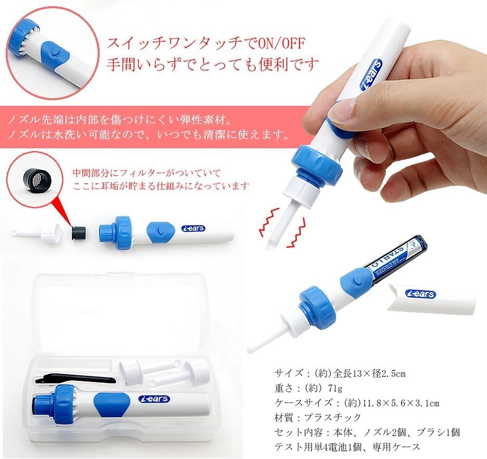 Fine vibration shakes off the earwax of the inner wall and sucks firmly, so care for this product ease.