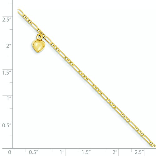 Roy Rose Jewelry 14K Yellow Gold Figaro Link with Dangling Heart Anklet ~ Length 10'' inches