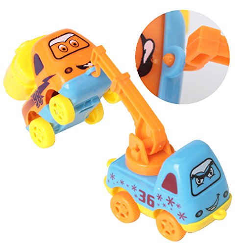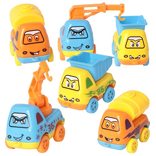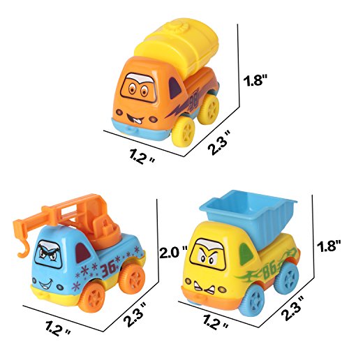 Measure: about 2.3L×1.2W×2.0H (inch). Package includes 6×Car. Suitable for AGE 3 years and up. Any kid who loves trucks will love this sets. All trucks runs on push-and-go power. Kids will enjoy taking this wherever they go - Provides hours of imaginative play.