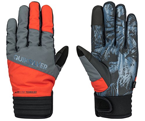 Studio : Quiksilver Young Men's Snow Publisher : Quiksilver Young Men's Snow Binding : Apparel Product Description Snowboard/ski gloves for men. Features include: fabric (outer): dobby weave blend [black, red], polyester plain weave [printed], fabric (palm): silicon printed palm, insulation: warm flight insulation [fill weight: 110g], insert/waterproofing: dry flight waterproof insert and cuff: hook loop fastener tape cuff closure. 0