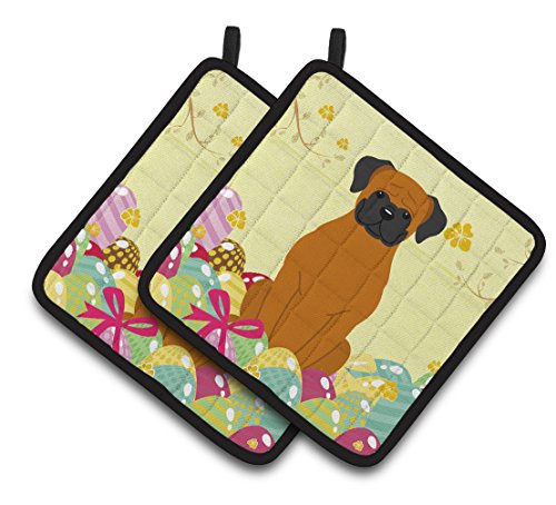 Caroline's Treasures Easter Eggs Fawn Boxer Pair of Pot Holders, 7.5HX7.5W, Multicolor
