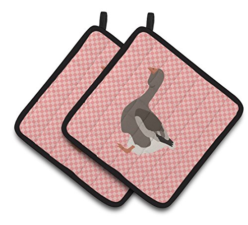 Caroline's Treasures BB7897PTHD Toulouse Goose Pink Check Decorated Pot Holder, 7.5" x 7.5", Multicolor