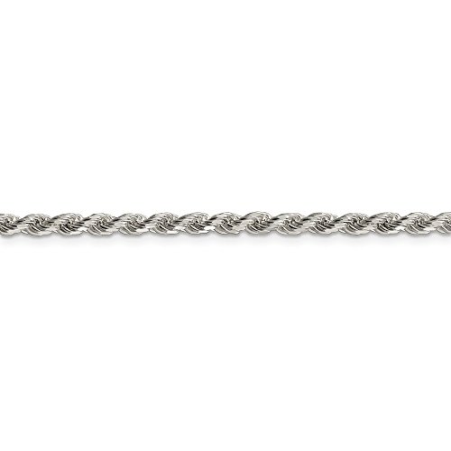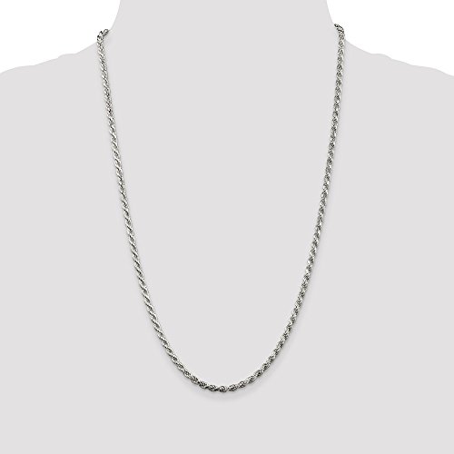 Solid 925 Sterling Silver 3mm Diamond-Cut Rope Chain Necklace 18" - with Secure Lobster Lock Clasp