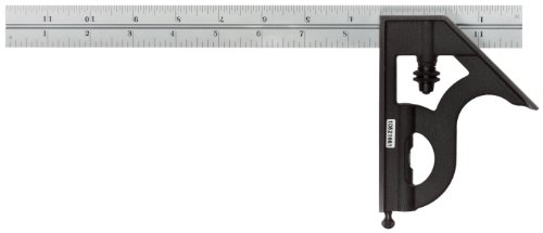 Starrett C11H-12-4RW/SLC Cast Iron Square Head With Satin Chrome Blade Combination Square, Black Wrinkle Finish, 4R Graduation, 12" Size
