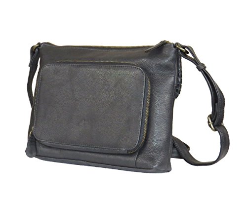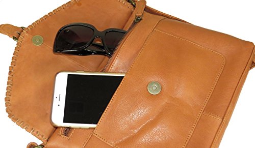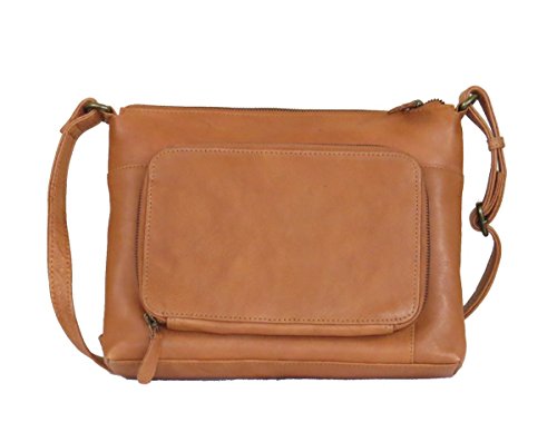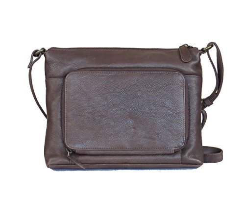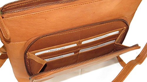 Product Description MATERIALS: Made from high quality genuine leather. Top zipper closure. SIZE of bag: 10" x 8.25" x 2.25.". Adjustable shoulder strap. Strap drop: 23". Width; approx. 0.8". Tarnished gold tone hardware. EXTERIOR FEATURE: Convenient rear organizer zipper pocket (8 credit card slots, and one large open pocket. One front magnet flap pocket and zipper pocket for your cell phone, passport when traveling. INTERIOR: Roomy fully lined interior has large zipper pocket on one side. The other side features additional wall open pockets for glasses, sun glasses or keys, etc. QUALITY never goes out of style. This vintage style crossbody bag is made of high quality genuine leather and excellent craftsmanship. This bag got functionality of built-in organizer and the look of vintage style. Great gift idea for your friends and family. 0