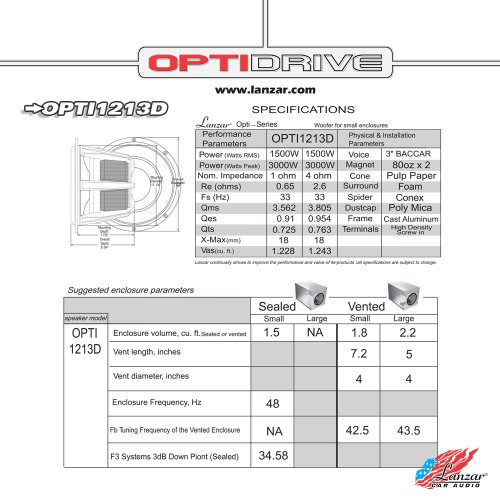 Lanzar OPTI1213D OptiDrive 12-Inch Die-Cast Aluminum Alloy Cone Dual Voice Coil 1.3 Ohm Subwoofer