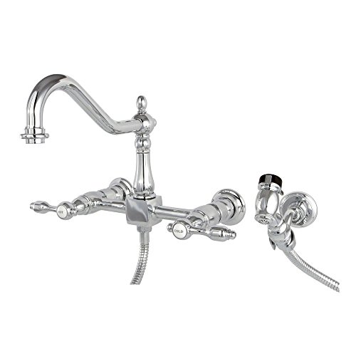 Kingston Brass KS1241TALBS Tudor 8 Inch Center Kitchen Faucet With Brass Sprayer, 8-1/2 inch in Spout Reach, Polished Chrome