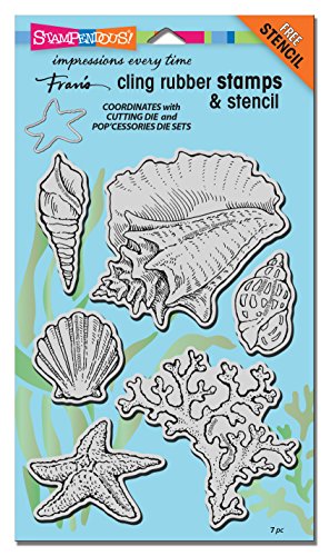 Stampendous Cling Rubber Stamp Set, Seashells with Template