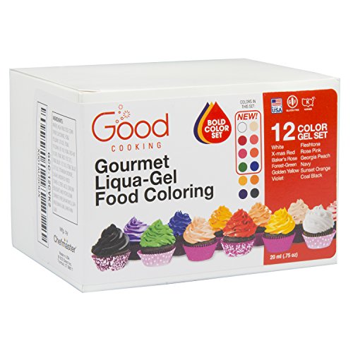 Food Coloring Liqua-Gel - 12 Color "Bold" Variety Kit 2 in .75 fl. oz. (20ml) Bottles