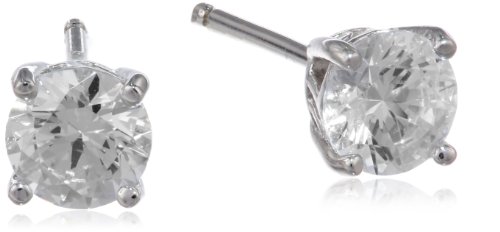 Myia Passiello Timeless Platinum-Plated Sterling Silver and Swarovski Zirconia Round Stud Earrings (1 cttw)