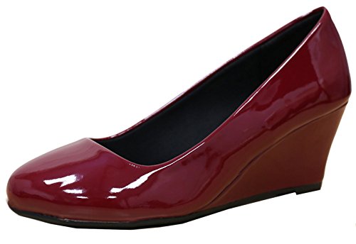 -. Feature : A WARDROBE STAPLE: Classic design features round toe with wedge heel & convenient slip-on design / VERSATILE: Perfect for everyday casual wear, an evening out or a day at the office! / VEGAN FRIENDLY: Faux patent/leatherette/suede throughout / COMFY: Approx 2.5" heel & lightly padded footbed / Imported