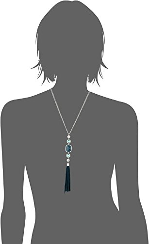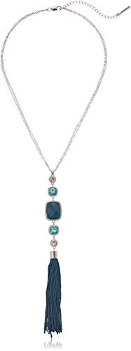 Faux suede tassel Y Necklace silver tone finish with dark teal stones Brand : T Tahari Item model num : 364207-17 MPN(PartNumber) : 364207-17 EAN : 0748838515104