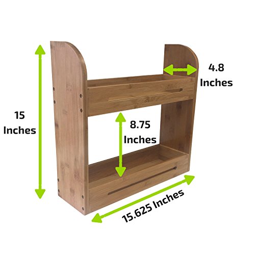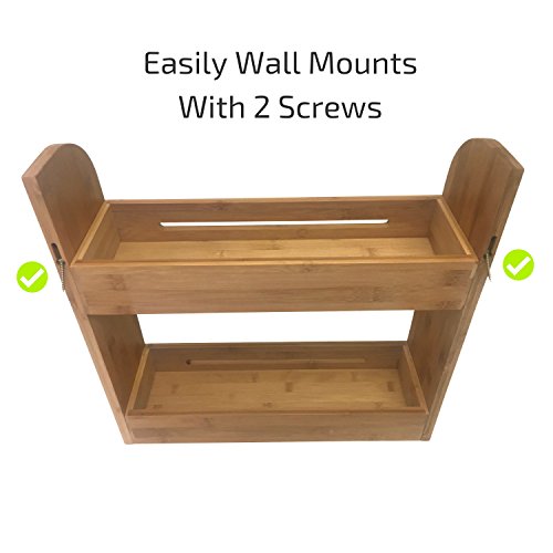 Product Description Two Tiered Bamboo Spice Rack Easily Cleans Up Your Countertop, Giving You Convenient Access To Your Herbs And Spices! Handcrafted with Sustainable Bamboo Wood and Sturdy Wood Screws, the versatile design of this Spice Rack can be used on the countertop or wall mounted! Key Features Benefits: - Sustainable Bamboo Wood provides a rich look in your kitchen. - Sturdy Construction with Solid Bamboo and Wood Screws. - Extra Deep Shelves provides 4 inches of space to fit your largest spice bottles. - Countertop and Wall Mount compatible to find the most functional space for use. Now It's Time To Organize Your Kitchen Space With This Exceptionally Built Two Tiered Bamboo Spice Rack! 0 |