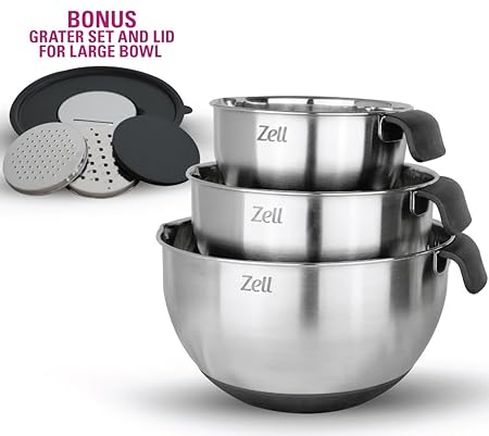 - VERSATILE: A great addition to any kitchen, this 3-bowl set can be utilized in so many different ways. Caps are provided for food storage, allowing you to prep and mix ahead of cooking. Bowls nest for compact storage in your cabinets. And clean up is a cinch, whether washed in the sink or run through the dishwasher.