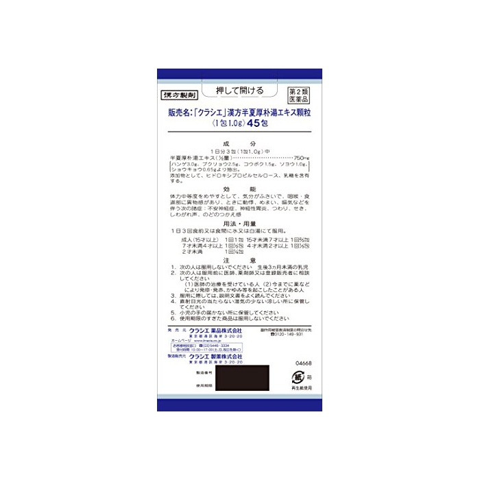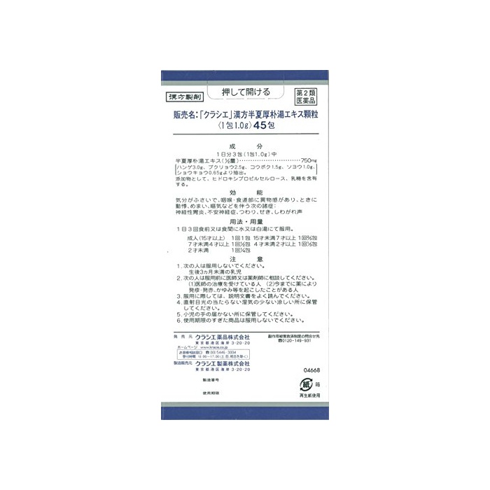 원본상품명: 【第2類??品】「クラシエ」漢方半夏厚朴湯エキス顆粒 45包