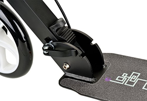 -. Feature : Bicycle-style handbrake for extra safety / Easy folding system & Parking stand / Adjustable handlebar 15" x 24" / 38 x 61 cm / Durable aluminum deck 5" x 22"/ 13 x 57 cm / Max Weight: 220 lbs/ 100 kgs, Product Weight: 9 lbs/ 4 kgs