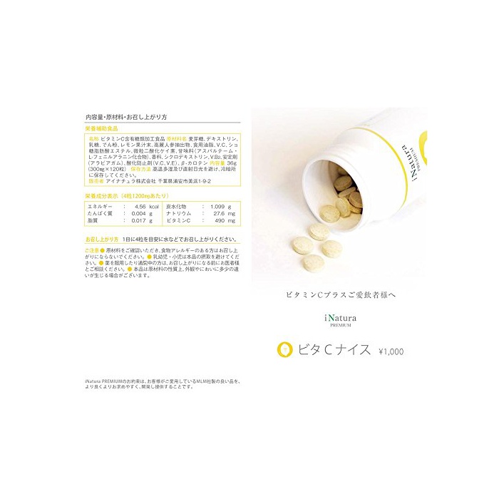 원본상품명: アイナチュラ ビタCナイス 300mg×120粒
