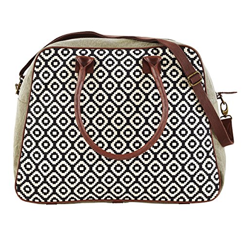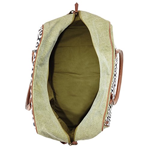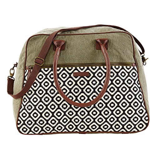 -. Brand : Bella Taylor -. ClothingSize : one size -. Color : Pier29 -. Department : womens -. EAN : 0840528128943 -. Feature : Casual meets playful with a contrasting creme and black tribal print, balanced with distressed olive green canvas accents. / Weekender: W 23" x D9" opening, H 14.75" x Base W 20" x D 11" / 2 arm straps 22", 1 removable strap 55" x 1". 10" shoulder drop. / 3 slip, 1 zip inside pockets. 1 outside zip pocket. / 100% Cotton Shell. Lined in olive green cotton, Trimmed in brown vegan leather. Antique brass hardware. Spot clean only, no chlorine bleach. -. ProductGroup : Apparel -. ProductTypeName : LAGE -. Size : one size -. Title : Bella Taylor Pier 29 Weekender -. UPC : 840528128943
