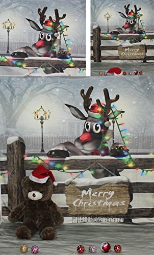 5x7ft Christmas Photo Backgrounds Wrinkle free Winter Snow & Red nose Santa Reindeer Photography Backdrops wdsd044
