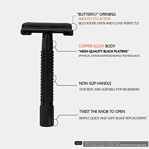 WEISHI PVD BLACK Version Butterfly Open Double Edge Safety Razor .