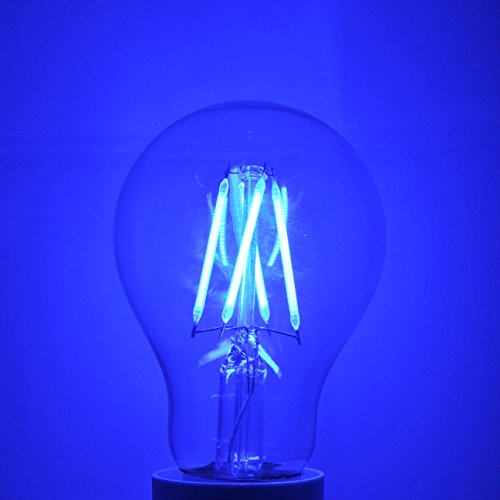 Modvera Blue LED Light Bulb A19 3 Watt E26 Base 15,000 Hour Lifespan Clear Glass Lights Up Blue