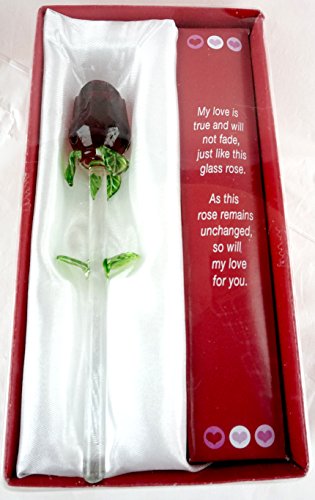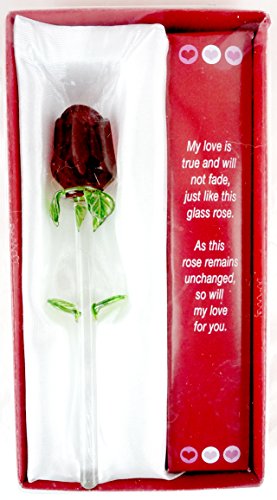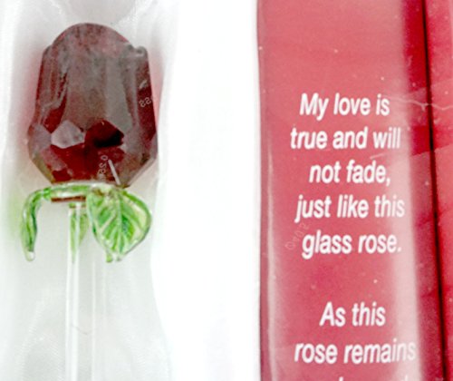 Forever Rose - Valentines Day or Special Occasion - Say I Love You with this Handmade Glass Roses with Love Poems 5" Boxed (RED, 1)
