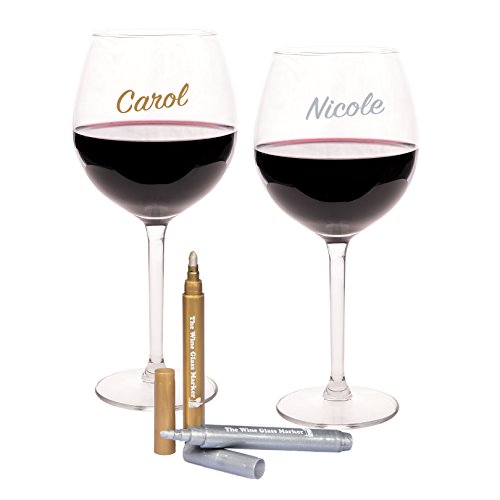 - Feature : EASY TO USE, AFFORDABLE AND MESS- FREE - Customize your drinking glass with unique designs to keep track of your favourite wine, beer or other beverage. Easy erasable with soap and water, dishwater safe. / IT MAKES SPECIAL OCASIONS EVEN MORE MEMORABLE - Your friends and family will get a smile on their face when they see their glass being served with their name lovingly written on it. Set them out before a party, barbecue, bridal or baby shower... or anytime people are gathering. Every social function can be made better using The Wine Glass Marker. / AVAILABLE IN 5 METALLIC COLORS - Available in 5 metallic colors for ultimate fun and style, so let your creative flair have its day. Packed in a wallet-style carrying case for easy storage, the markers come in gold, silver, purple, red and green. / GREAT FOR SO MANY DIFFERENT USES - label the spices and foods you store in glass jars. Label cheese plates or other dishes you bring to parties. Dinner plates with names written on them can substitute for place markers, and creative recipes can be clearly labelled so everyone knows what they are. Write messages on hallway or bathroom mirrors. Get creative with doodles on ceramic planters, or foster your kids' imagination by letting them draw on the windows or glasses. / UNIQUE GIFTING IDEA FOR FRIENDS, FAMILIES AND WINE CONNOISSEURS: Give them as a gift for the hostess at the next party you're attending. Add a personal touch to gifts by writing birthday or congratulations messages on wine bottles, picture frames or any glassware.