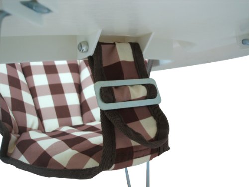 おしゃれなチェック柄の歩行器であかちゃんのあんよのお手伝い!●軽量でシンプルな、まぁるい歩行器です。●コンパクトに折りたたみができます。●床を傷つけにくく静かな消音キャスター採用。●股ベルトで高さ調節できます。