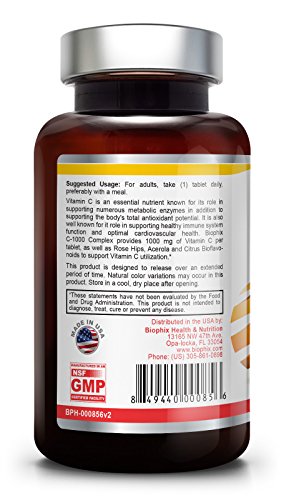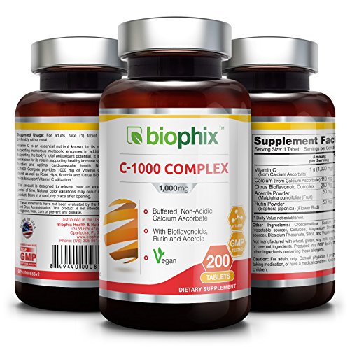 -. Binding : Health and Beauty -. Brand : biophix -. EAN : 0849440000856 -. Feature : Natural antioxidant protection / Buffered, Non-Acidic Calcium Ascorbate / With Bioflavonoids, Rutin and Acerola / Dietary Supplement -. Label : Biophix -. LegalDisclaimer : This information is intended for your general knowledge only and is not substitute for professional medical advice or treatment for specific medical conditions. This information is not intended to diagnose, treat, cure or prevent any disease. Always seek the advice of your qualified physician or other health care provider with any questions you may have regarding a medical condition. Keep out of reach of children. -. Manufacturer : Biophix -. MPN : 849440000856 -. NumberOfItems : 1 -. PackageQuantity : 1 -. PartNumber : 849440000856 -. ProductGroup : Health and Beauty -. ProductTypeName : HEALTH_PERSONAL_CARE -. Publisher : Biophix -. Studio : Biophix -. Title : Biophix Vitamin C 1000 Complex 200 Tabs -. UPC : 849440000856