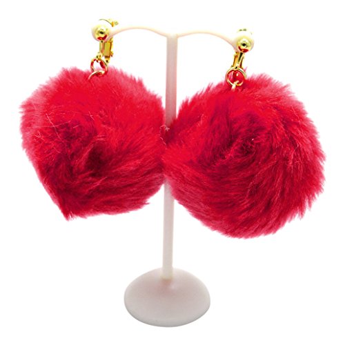 -. Title : カラー ファー ポンポン イヤリング
