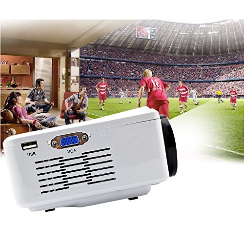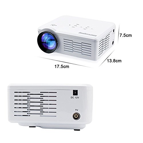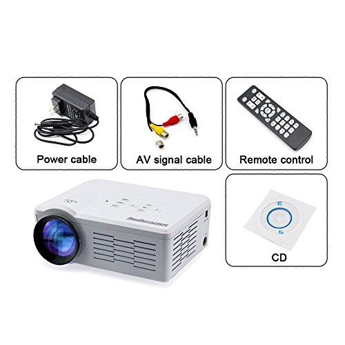 Description: USB/SD Card Direct Play Just plug in the power, insert the card or flash drive, then you can enjoy the images and videos directly. Smart and affordable With 6.85.352.8inch dimension, 2.39 lb weight, you can take it everywhere you like. Various multimedia ports AV/VGA/SD/USB/HDMI slots makes it possible to connect desktop, notebook, tablet, DVD, WII, XBOX, MP5, digital camera to this projector easily. Long lamp life The led lamp works 20,000 hours which get you rid of searching a replacement bulb. Qualified image This mini projector has a contrast of 500:1 with a brightness of 800 Lumen, capable for all kinds of daily use like watching movie or make a presentation, etc.Warranty12 months honest warranty, friendly and effective after-sale service, put your worries aside. Email us if you met any problem when using it. A detailed FAQ or return instruction is ready to send to you. For Optimal Use1. Perfect for early child education and Home Schooling2. Home Entertainment: watch your favorite programs on the bigger screen.3. Conference Rooms: Staff meeting for presenting reports or reviewing projects. Package Contents:1 BL35 Mini Projector1 AV cable1 Remote control1 User manual.Feature