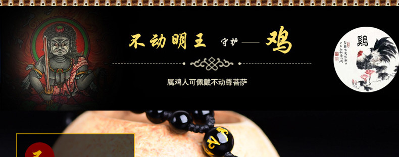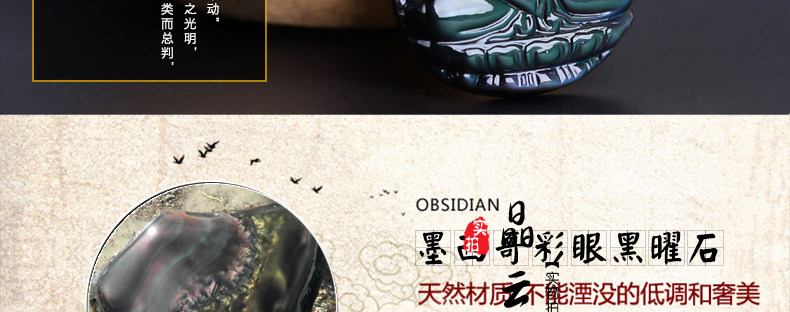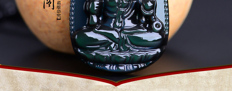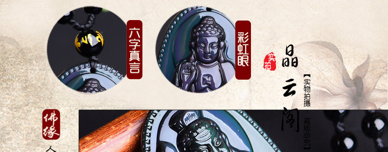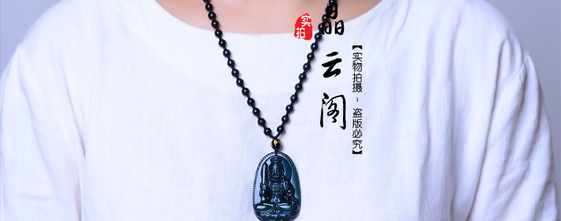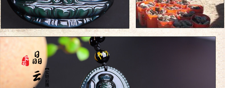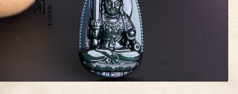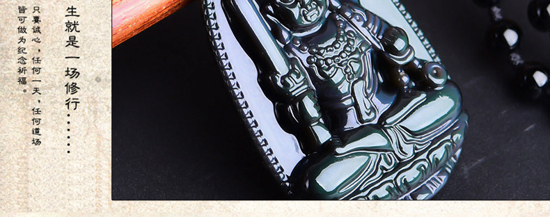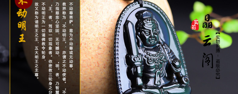 开光 天然彩虹眼黑曜石不动尊不动明王菩萨 生肖鸡本命佛男女吊坠