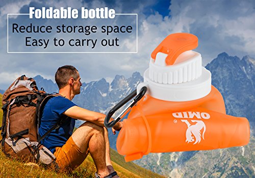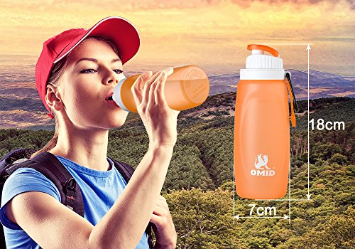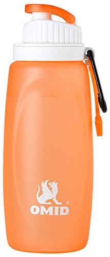 OMID 11 Ounce Hiking Collapsible Silicone Water Bottle with Holder Hook and Leak Proof Valve, BPA-Free, FDA Approved