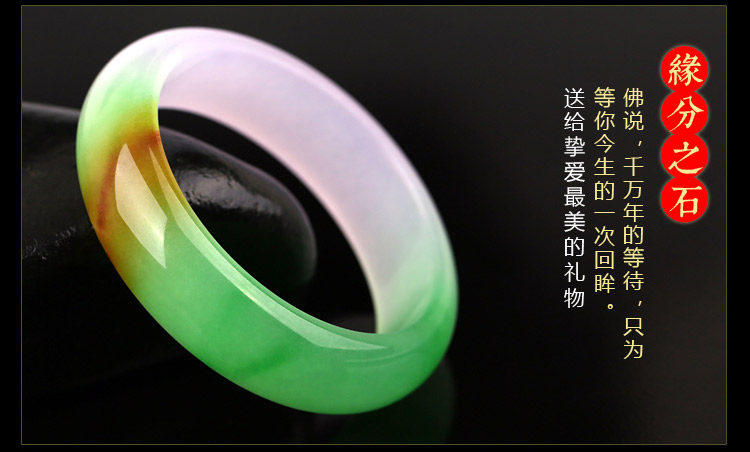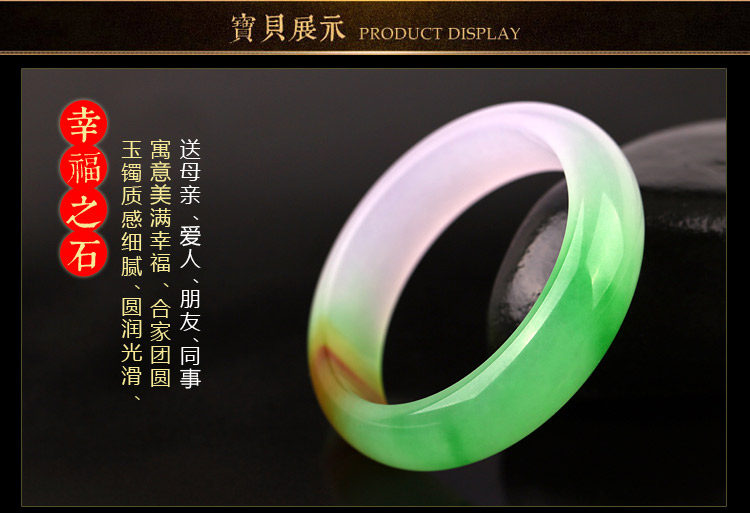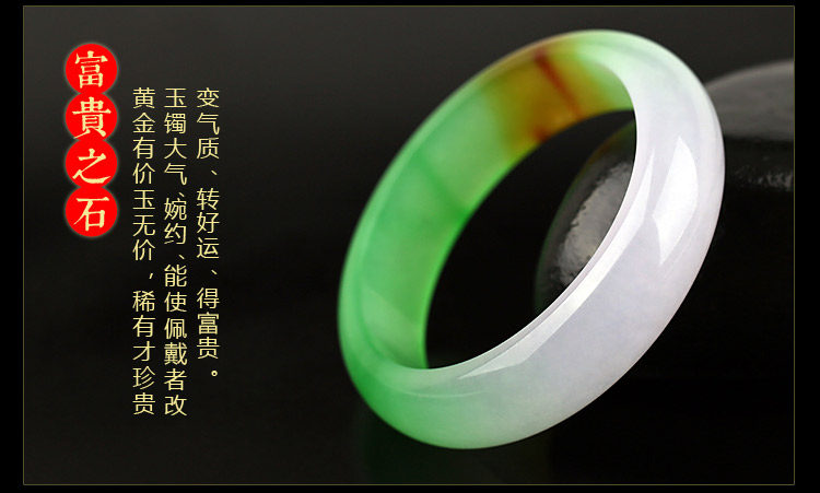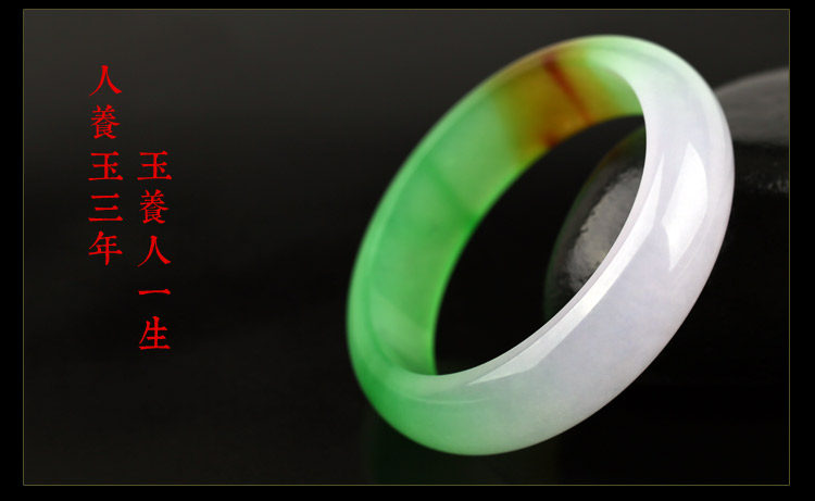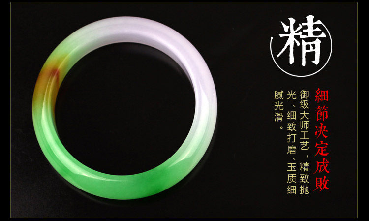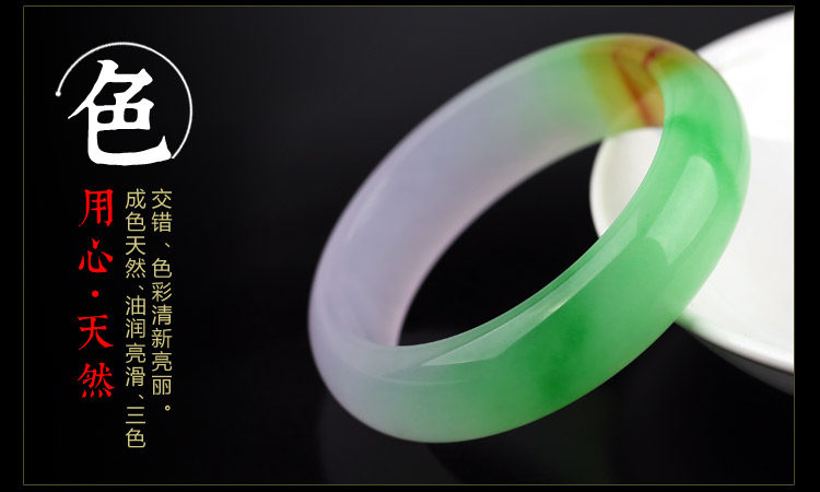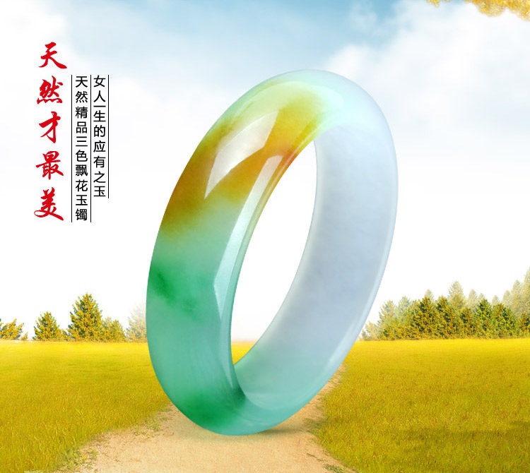 天然翡翠色飘花玉镯三色飘花手镯女玉镯