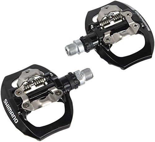 ReleaseDate : 2011-08-02 Studio : Shimano Publisher : Shimano Binding : Sports Product Description If you use one bike for lots of different activities, the Shimano PD-A530 is the pedal for you. One side of the pedal features a wide, slightly concave platform for use with street shoes -- perfect for impromptu trips to the grocery store and other informal joyrides. The other side of the pedal is a fully featured SPD-specific clip interface that provides extra efficiency and security for more intense types of riding. Includes one pair of two-bolt SPD cleats. 0