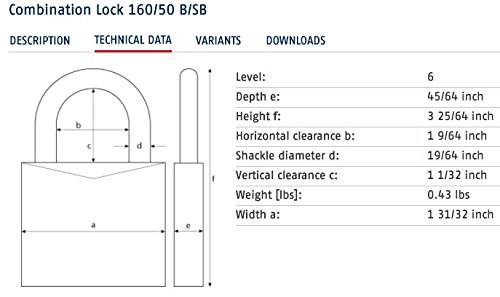 -. Binding : Tools & Home Improvement -. Brand : ABUS -. Color : Chrome -. EAN : 0078217128114 -. Feature : Double bolted hardened steel shackle resists hacksaw attacks / Heavy duty solid zinc body with chrome plating for weather resistance / No tools required to change combination / 10,000 possible combinations -. Label : ABUS -. Manufacturer : ABUS -. Model : 160/50 B -. MPN : 160/50 B -. NumberOfItems : 1 -. PackageQuantity : 1 -. PartNumber : 160/50 B -. ProductGroup : Home Improvement -. ProductTypeName : HARDWARE -. Publisher : ABUS -. Size : 2.0-Inch -. Studio : ABUS -. Title : ABUS 160/50 All Weather Chrome 4-Dial Resettable Combination Padlock -. UPC : 078217128114 -. Warranty : If an ABUS product fails to work properly due to a manufacturing defect, return it to ABUS postage pepaid, and we will return it repaired or replaced at our discretion. ABUS prodcuts are warranted for specific periods of time from date of purchase. Specific warranty periods appear on the packaging.