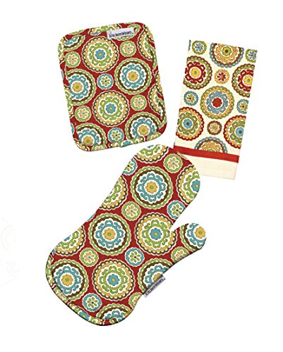 • Coordinates with kitchen wears Suzani red collection; includes pot holders, mitts and towels