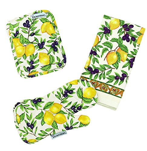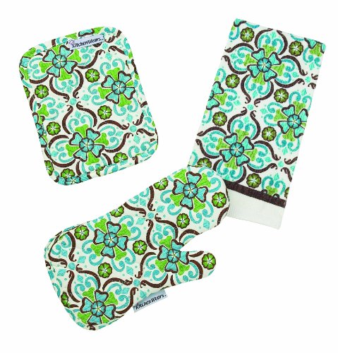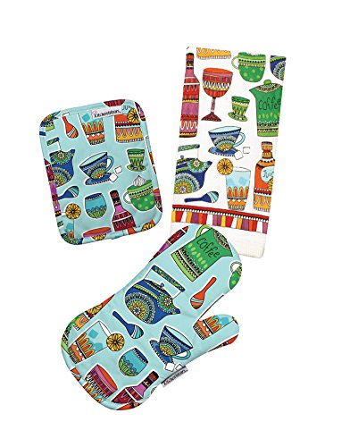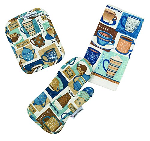 • Coordinates with Kitchen wears daily sip collection; includes pot holders, mitts and towels