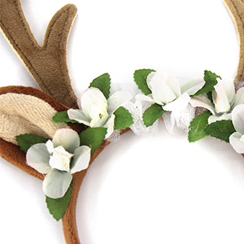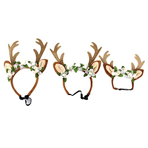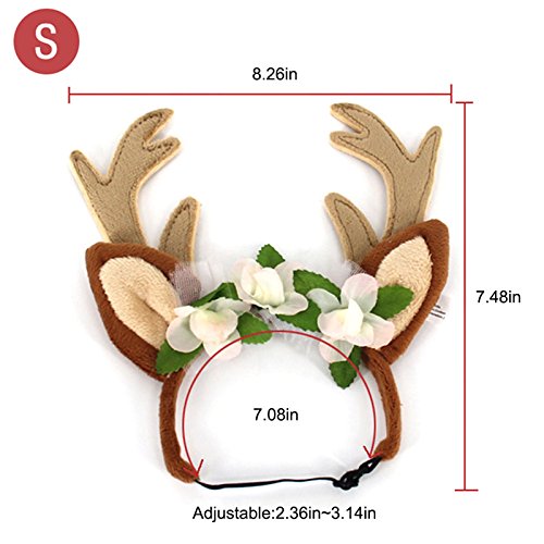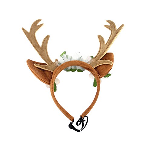 -. Feature : A cute hair band with the pattern of deer horn and flower for your pet, matches to Christmas atmosphere. / Made of cotton cloth, comfortable to wear. / Perfect for keeping your dog or other pets in style, more beautiful or gentler than others. / Suitable for Christmas, Halloween,weddings and parties costume for your pet. / A great gift for your dog