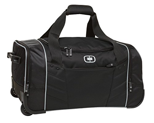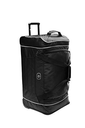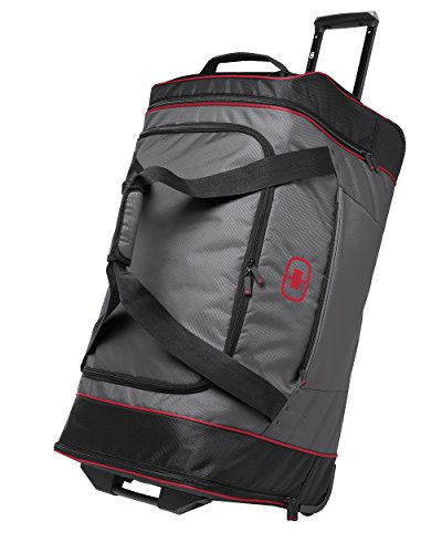 Product Description Skate effortlessly through the airport or train station with this durable wheeled duffel that's sized to fit your trip. 420D poly Locking retractable handle for optimum mobility Large center storage area for clothes toiletries and other travel accessories Hidden front exterior zippered stash pocket Side exterior zippered pockets for extra storage Wrapped handle for comfortable carrying Strong durable grip handle on foot soft grip handles on top for easy lifting In-line skate wheels Dimensions: 30 h x 15 w x 14 dCapacity: 6 270 cu. in./102.7LWeight: 8.4 lbs./3.8kgNote: Bags not intended for use by children 12 and under. Includes a California Prop65 hangtag. 0