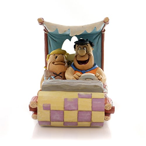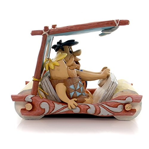 . Bedrock Buddies. Fred Flintstone and Barney Rubble in Car Figurine. Part of the Hanna Barbera collection by Jim Shore. Made from stone resin. Approximately 4 inches tall (10 cm). Includes original manufacturers box and packaging. Made by Enesco. Folk art meets the Stone Age in Jim Shore's new collection featuring the beloved characters from The Flintstones. Here Fred and Barney cruise in their foot-powered car decorated in Jim's signature combination of quilt patterns and rosemaling motifs. Officially licensed Flintstones productFeature