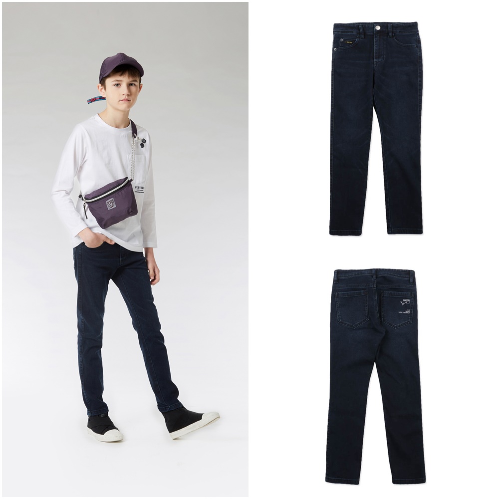 스포티 하면서 스트릿한 감성의 슬림한 일자핏 다크한 데님 팬츠 입니다.